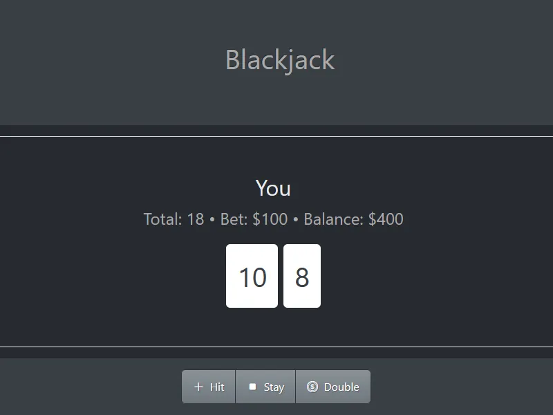 Blackjack game. Try to make as much money as possible!